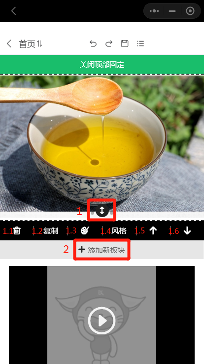 1、页面管理、头部导航、底部导航、主题设置的入口;